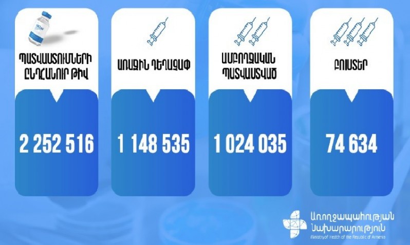 Առողջապահության նախարարությունը թարմացված վիճակագրություն է ներկայացրել, համաձայն որի՝ սեպտեմբերի 18-ի դրությամբ պատվաստումների ընդհանուր թիվը 2 252 516 է, առաջին դեղաչափ ստացածների թիվը՝ 1 148 535, ...