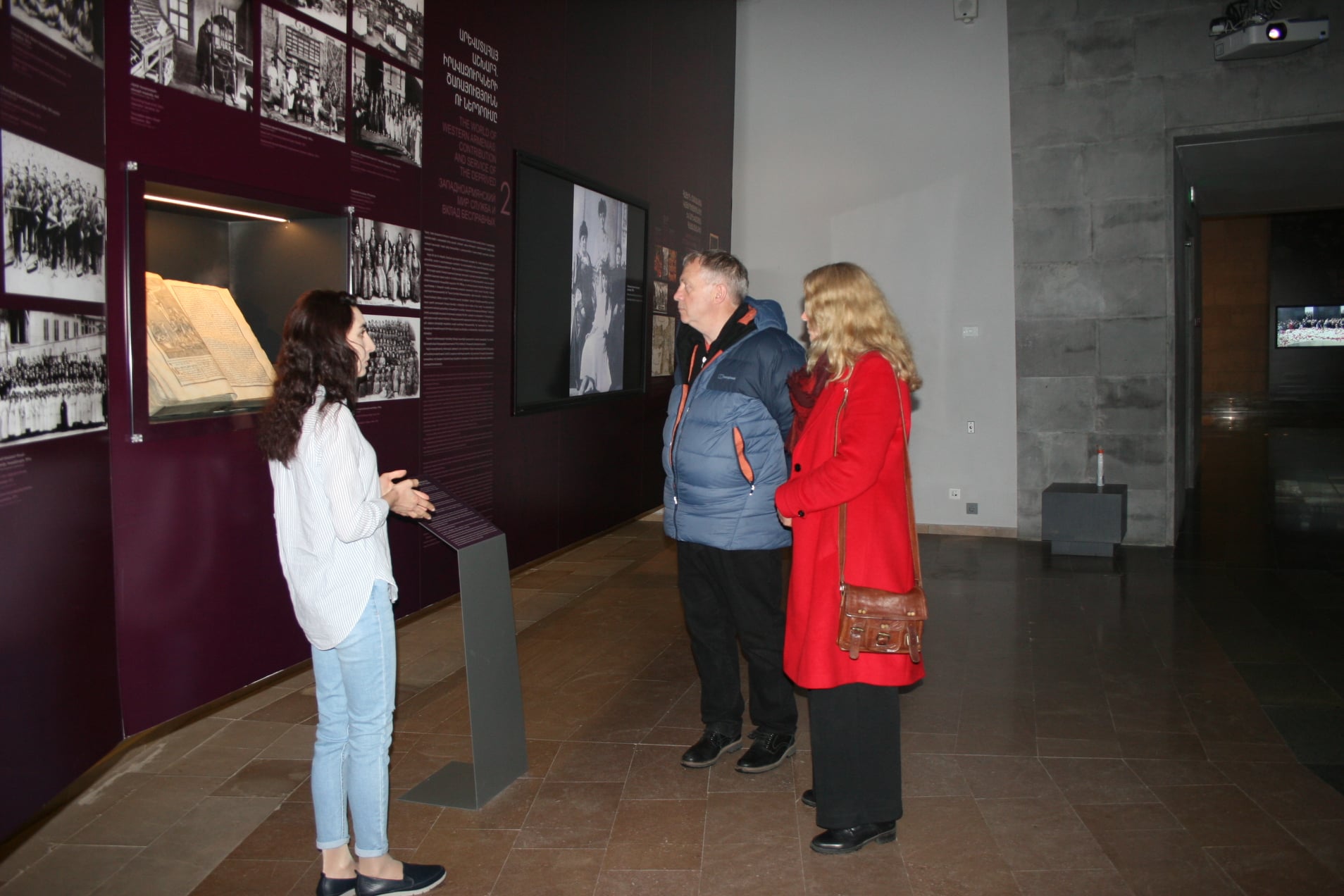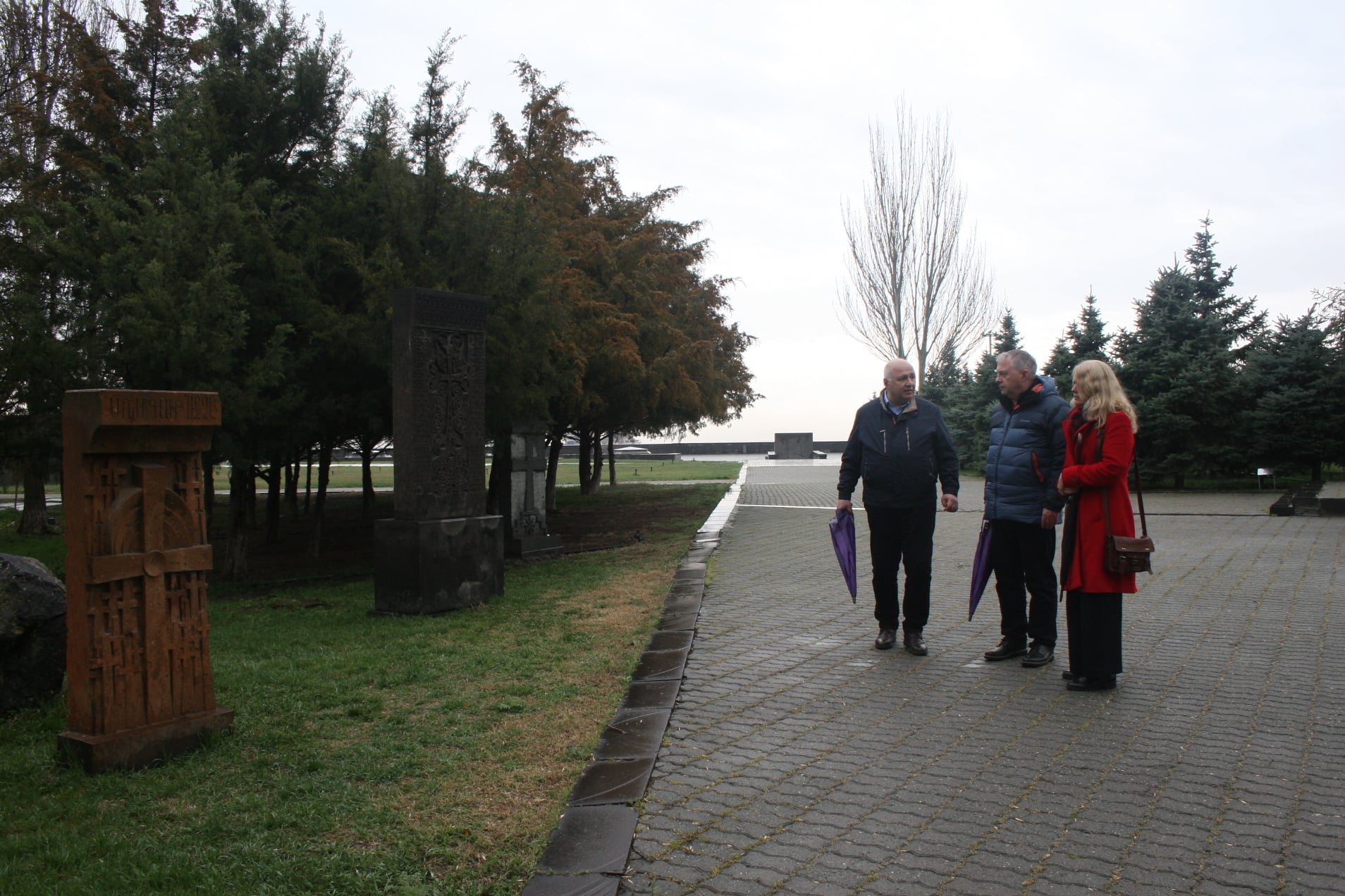 Հյուրերին դիմավորեց և հուշահամալիրի ստեղծման պատմությունը ներկայացրեց Հայոց ցեղասպանության թանգարան-ինստիտուտի տնօրեն Հարություն Մարությանը: Նա հյուրերին ներկայացրեց նաև Ծիծեռնակաբերդի տարածքում տեղադրված երեք խաչքարերի պատմությունը, որոնք նվիրված են անցյալ դարավերջին Ադրբեջանի տարածքում հայ բնակչության նկատմամբ իրականացված էթնիկ զտումների ընթացքում զոհված հայերի հիշատակին:
