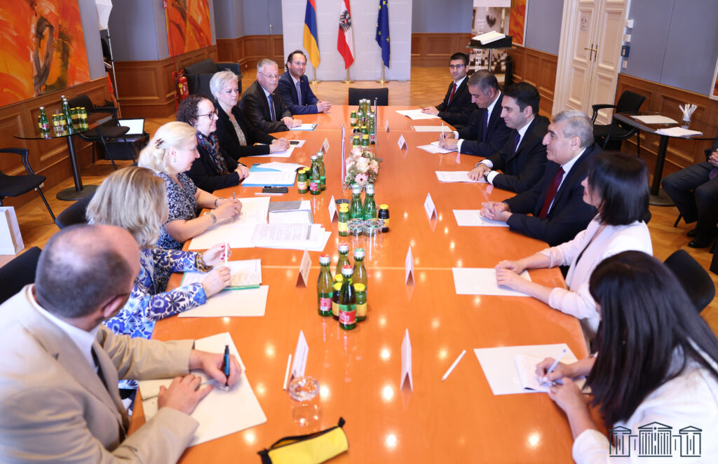 ՀՀ ԱԺ նախագահը գործընկերոջ հետ զրույցում նշել է, որ վերջին տարիներին Հայաստանի եւ Ավստրիայի միջեւ քաղաքական հարթակում նկատվում է երկկողմ հարաբերությունների զարգացման դրական դինամիկա. տեղի են ունեցել ակտիվ փոխայցելություններ, հանդիպումներ նախագահների, վարչապետների, արտգործնախարարների մակարդակով: Նա հավելել է, որ անհրաժեշտ է համագործակցություն հաստատել Հայաստանի խորհրդարանի եւ Ավստրիայի խորհրդարանի վերին պալատի միջեւ, քանի որ խորհրդարանական դիվանագիտությունը զգալի դեր է խաղում հայ-ավստրիական երկկողմ օրակարգի գործում ինչպես դաշնային, այնպես էլ ապակենտրոնացված մակարդակով: