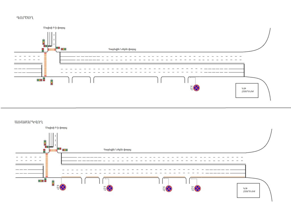 Նախկինում Գարեգին Նժդեհի- Մայիսի 9-ի փողոցների խաչմերուկից դեպի Արշակունյաց պողոտա երթևեկելիս թույլատրվում էր աջ կողմում կանգառ կատարել, փոփոխությունից հետո նշված հատվածում կանգառ կատարելը կարգելվի: