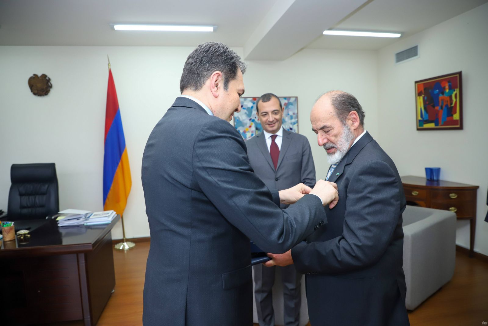 Նախարարի տեղակալը պատվո հյուպատոսին է հանձնել ՀՀ նախագահի կողմից շնորհված «Բարեկամության» շքանշանը՝ հայ-իտալական բարեկամական կապերի ամրապնդման և զարգացման գործում նրա ներդրած նշանակալի ավանդի համար։