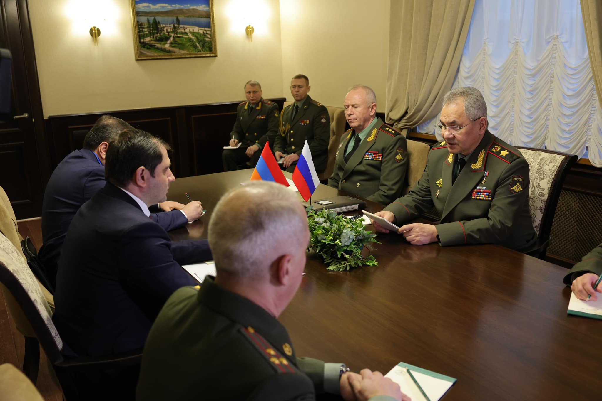 Այնուհետև տեղի է ունեցել ՀՀ պաշտպանության նախարար Սուրեն Պապիկյանի և ՌԴ պաշտպանության նախարար, բանակի գեներալ Սերգեյ Շոյգուի հանդիպումը: