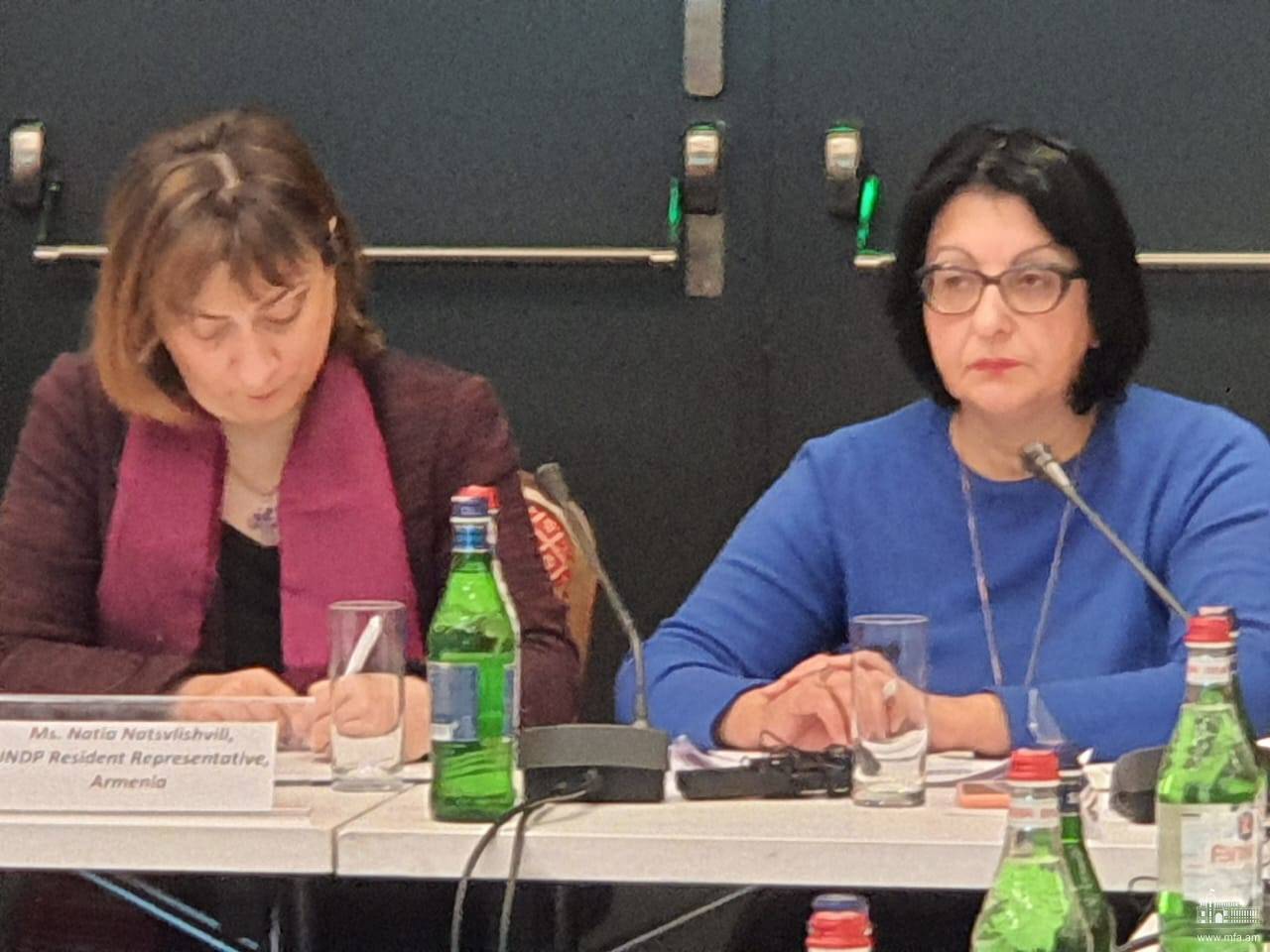 Քննարկմանը բացման խոսքով հանդես են եկել ՀՀ ԱԳՆ մարդու իրավունքների և հումանիտար հարցերի վարչության պետ Կարինե Սուջայանը և Հայաստանում ՄԱԿ-ի զարգացման ծրագրի մշտական ներկայացուցիչ Նատիա Նացվլիշվիլին։